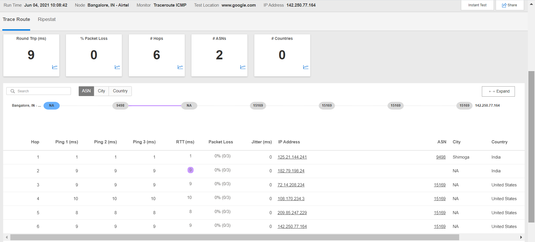 BGPウィジェットは、ポータルのtracerouteモニターや、エラー時のデバッグとしてtracerouteを持つウォーターフォール、または追加モニターの下で利用できます。